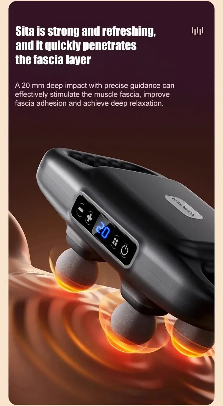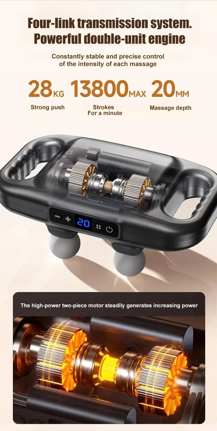 - Deep & Effective Massage: Featuring a unique 4-head design, this massager delivers 60 percussions per second with a 10mm depth amplitude. The large massage area and powerful percussion effectively relax muscles and fascia, leaving them soft and elastic.