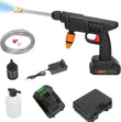 Easily Switch Modes: Adapt to any cleaning need with the cordless pressure washer’s multiple spray options: direct high-pressure for tough stains, a 180° fan-shaped spray for large areas, and a 45° foam jet for powerful stain removal.